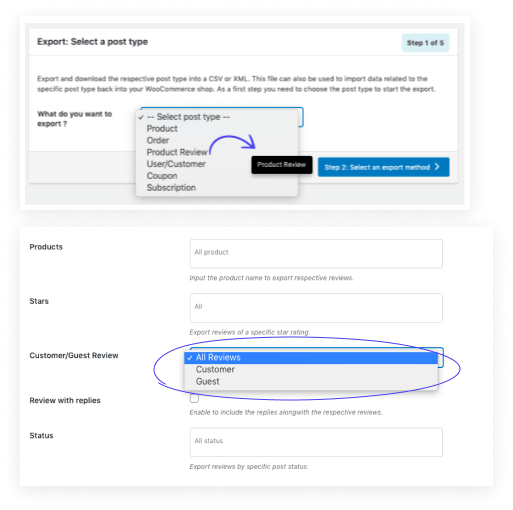Export Product Reviews: You can export product reviews based on ratings, stars, customer/guest reviews, status, products etc.